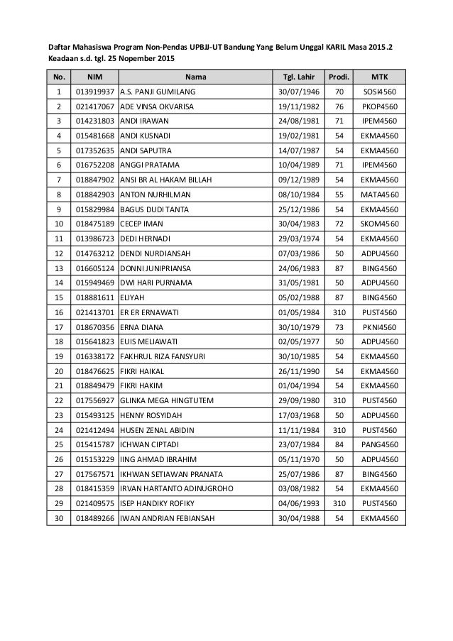 Ketuntasan belajar hasil tes formatif pra siklus. Jadi kalian pun bisa melihat lokasi keluarga, teman, ataupun pacar menggunakan cara ini. Pengumuman hasil ujian tulis berbasis komputer (utbk) sbmptn 2019 gelombang i akan diinformasikan oleh ltmpt pada selasa (23/4/2019). Dan udah aku isi user name, paswor, register dan udah masuk, tapi aku lupa belum. Atau silahkan cek ke upbjj masing, untuk melihat status karil (hasil) nya apa sudah diterima atau belum, lulus atau tidak. Apa itu tap & karil ut (universitas terbuka)? Anda akan di arahkan untuk melihat akun karya ilmiah anda, dan selesai. Contoh rumusan cari posisi jitu ekor dari ribuan rumus lainnya. Untuk melihat status karil mahasiswa, klik menu status artikel mahasiswa status karil. Cara belajar mahasiswa ut diharapkan dapat belajar secara mandiri. Sedangkan nama mahasiswa dan nim untuk itu perlu diperhatikan ketika upoad karil pastikan proses upload selesai 100% dengan melihat tanda loading pada browser sudah berhenti. Karil merupaka kepanjangan dari karya ilmiah, yang merupakan mata kuliah yang wajib diambil bagi mahasiswa program sarjana di ut. Cara unggah karil ut pendas.