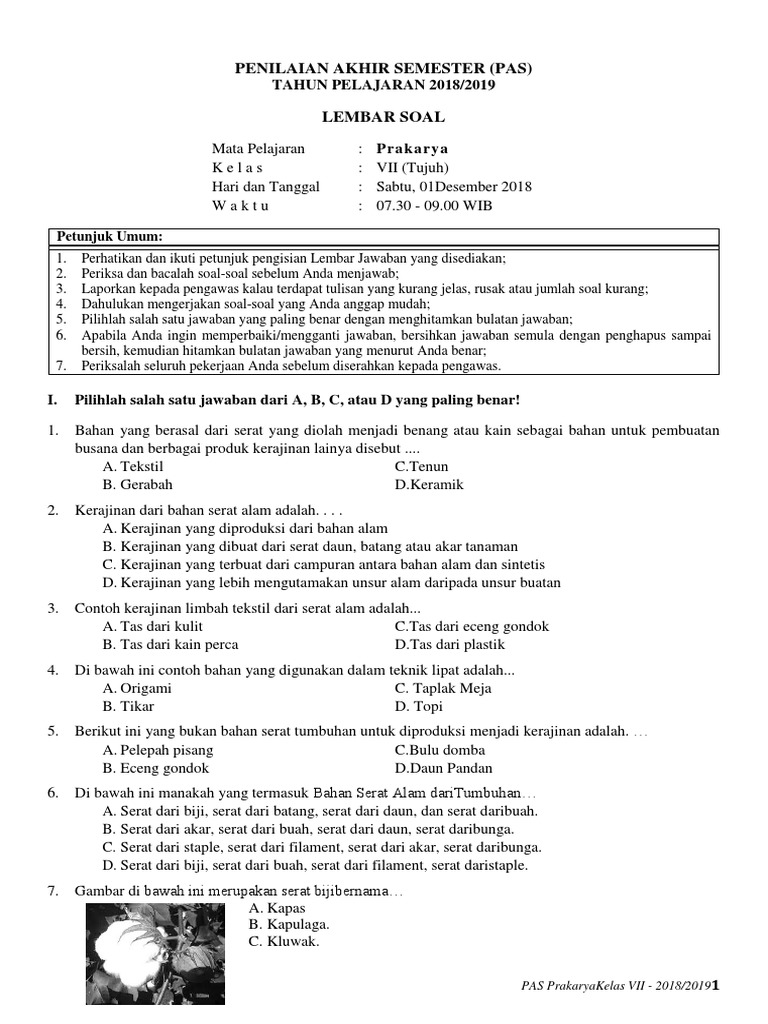 Contoh Soal Jawab Pas Uas Semester Satu I 1 Prakarya Kelas 7 Smp Mts Tahun 2019 2020 Informasiguru Com from 2.bp.blogspot.com Maybe you would like to learn more about one of these? We did not find results for: Kunci jawaban pas prakarya kelas 7. Check spelling or type a new query.