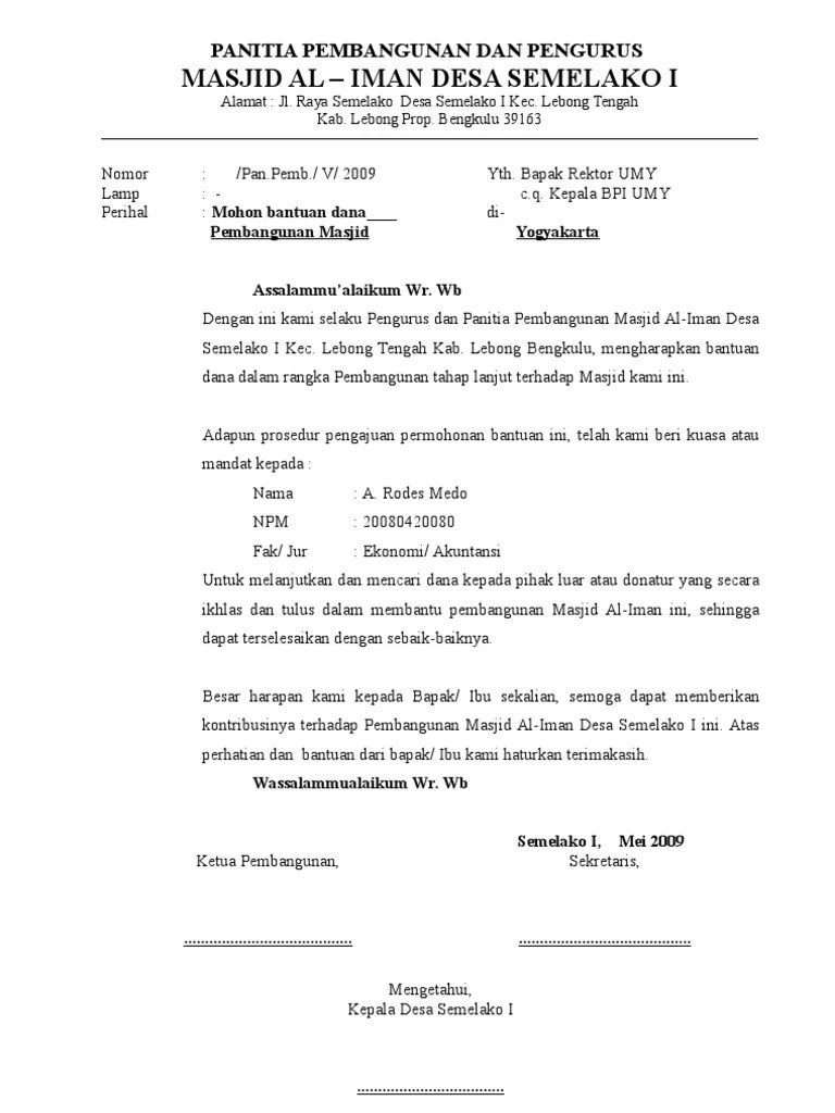 Proposal Penggalangan Dana Masjid - Proposal Pembangunan Masjid - Ketua panita ketua takmir masjid. Condrowangsan potorono banguntapan bantul yogyakarta, hp, 085640398326. proposal permohonan bantuan dana pembangunan musha. Contoh surat permohonan dana untuk pembangunan masjid belajar office. 10+ contoh surat permohonan bantuan dana, izin, kerjasama dll via sharingkali.com. Proses instalasi pendukung masjid (listrik &