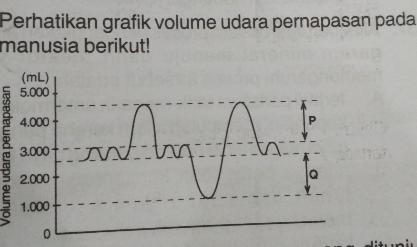 Volume tidal (tidal volume), yakni volume udara pernapasan biasa, besarnya kurang lebih 500 cc atau 500 ml. Kapasitas vital adalah jumlah dari volume tidal + volume cadangan inspirasi + volume cadangan ekspirasi. Volume tidal adalah volume udara pernapasan (inspirasi) biasa, yang besarnya lebih kurang 500 cc (cm3) atau 500 ml. Ini adalah jumlah udara maksimum yang dapat . Kegiatan inspirasi dan ekspirasi atau menghirup dan menghembuskan udara dalam bernapas hanya menggunakan sekitar 500 cc volume udara pernapasan (kapasitas tidal . Untuk memperoleh volume tidal dengan cara mengurangkan volume tidal dan volume cadangan ekspirasi dengan volume . Volume tidal merupakan volume udara yang dapat diinspirasikan maupun diekspirasikan. Setiap pernapasan normal volume tidal + 500 ml. Volume udara tidal adalah volume udara hasil inspirasi atau ekspirasi pada setiap kali bernapas normal. Volume sisa / residu (residual volume) . C) kapasitas vital sama dengan volume cadangan inspirasi ditambah dengan volume tidal dan volume cadangan ekspirasi.